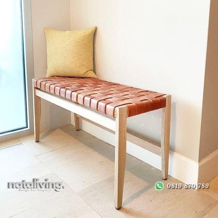 Bangku kayu jati rajut kulit sapi asli bangku santai terbaru nataliving furniture