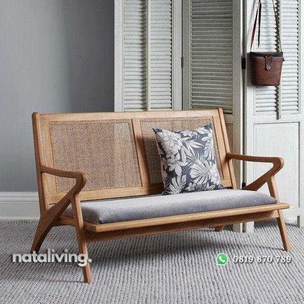 Bangku sofa kayu jati dudukan busa sandaran rotan alami nataliving furniture