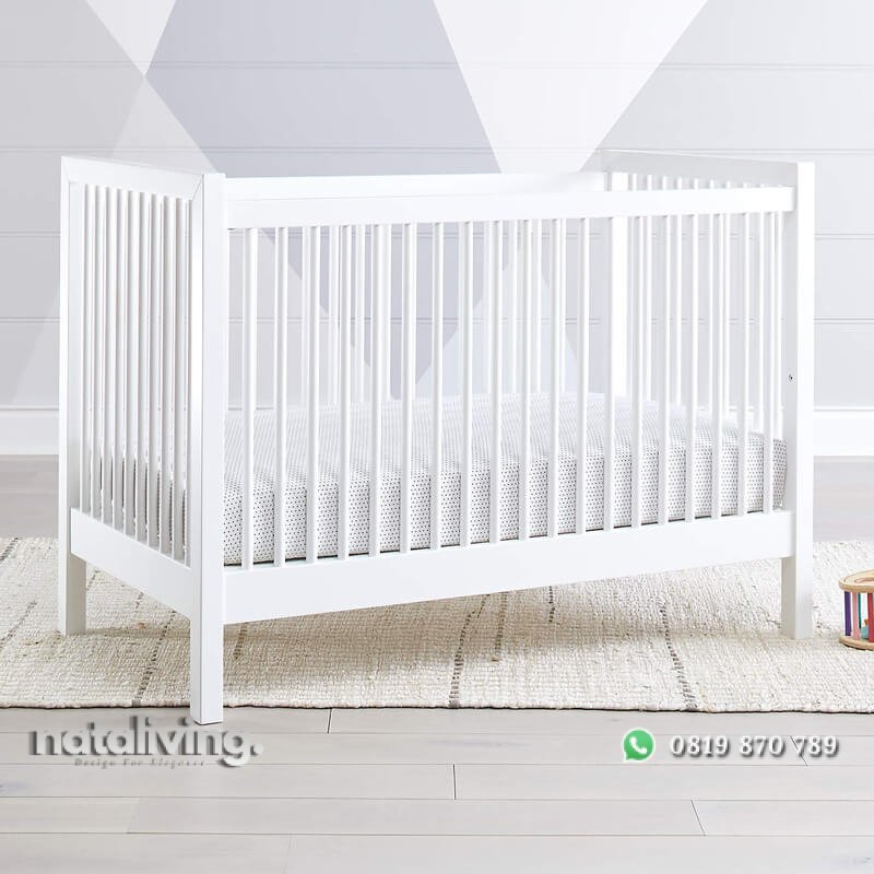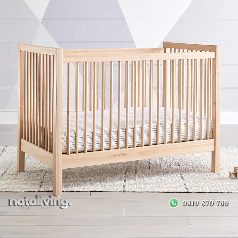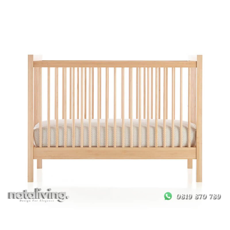 Ranjang untuk bayi ini bergaya minimalis simpel model terbaru tahun 2021 degan sentuhan finishing natural. Terbuat dari bahan kayu mahoni pilihan yang sudah dioven sehingga kontruksinya pastinya kokoh dan kuat.