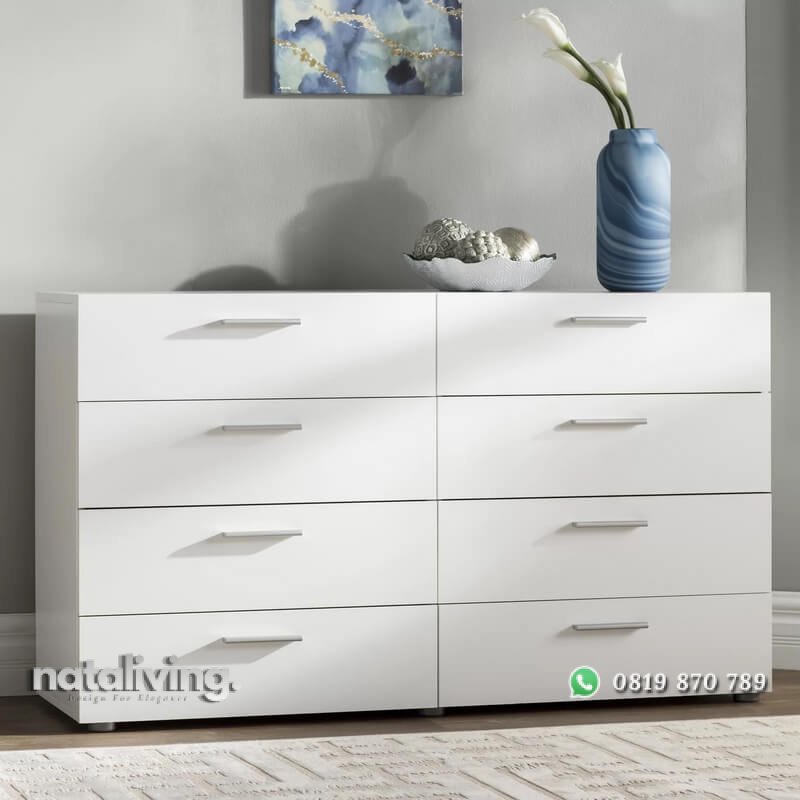 Hasil dari tangan pengerajin jepara berpengalaman dari bahan kayu mahoni oven ini pastinya memiliki kontruksi kuat, awet dan tahan lama. Dresser warna cat duco putih hadir dengan desain minimalis model 6 laci terbaru. Dimana desainnya sangat keren dan juga memiliki visual yang cakep. Sehingga akan sangat cocok sekali untuk menjadi pelengkap furniture pada hunian idaman anda.