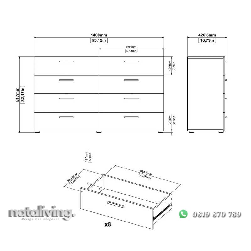 - Dresser : P 140 cm x L 42 cm x T 81 cm