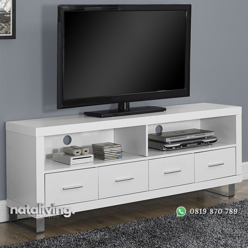 Ini adalah meja TV yang telah dirancang dengan gaya minimalis yang modern, menampilkan kesan simpel yang menawan, dengan kaki meja dari stainless yang menambah kesan indahnya.