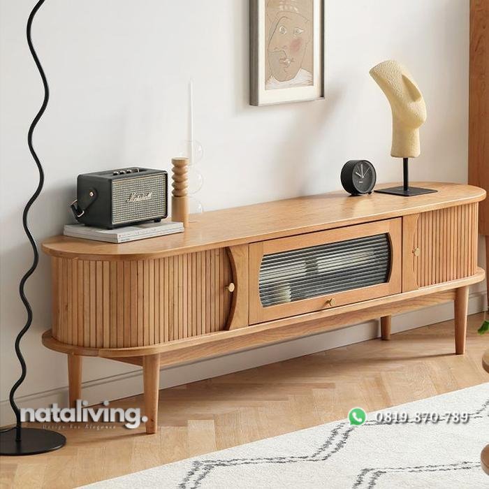 Bufet tv pintu salur sleding credenza tv kombinasi kaca nataliving furniture