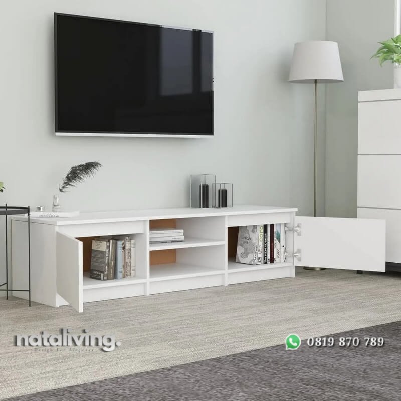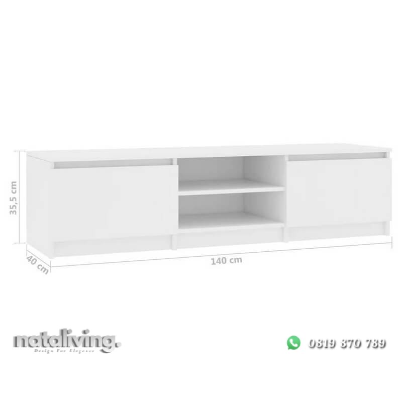 Mengusung konsep minimalis modern gaya terbaru masa kini yang sangat kekinian sekali. Dimana memiliki fitur 2 tempat penyimpanan berpintu dan tempat untuk DVD, PS atau sejenisnya. Tentunya, tampilannya dipercantik dengan sentuhan cat duco warna putih tebal, halus dan rapi yang menjadikannya semakin keren. Sehingga bufet tv putih minimalis akan sangat cocok untuk menjadi pelengkap furniture pada hunian idaman anda.