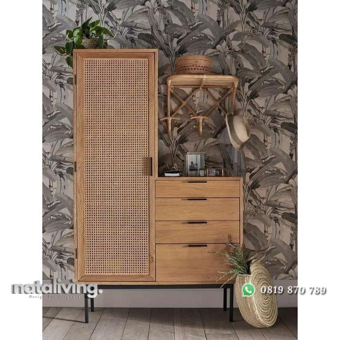Buffet kayu jati kombinasi rotan kaki besi bufet terbaru nataliving furniture