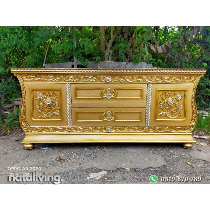 buffet tv kayu jati full emas terbaik buffet terbaru nataliving furniture