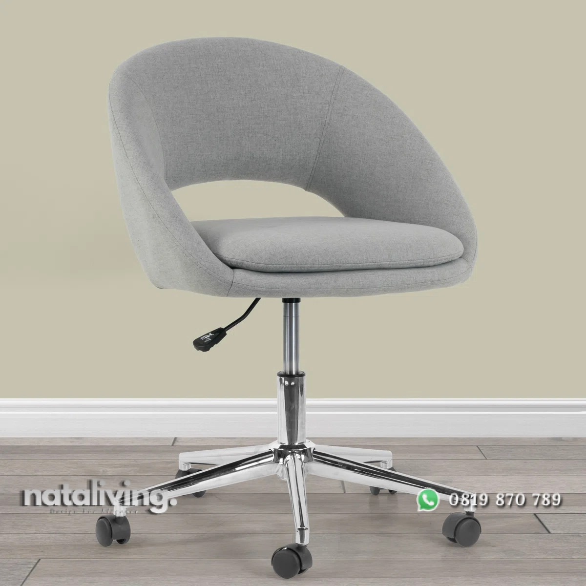 Chloe Ann Kursi Kerja Kantor berbalut sofa yang akan memberikan Anda kenyamanan saat bekerja. Dilengkapi roda kecil pada kakinya bisa membuat Anda leluasa bergerak maupun berpindah satu tempat, ada juga tuas dibawah yang bisa mengatur ketinggian sesuai postur tubuh Anda dan Kenyamanan Anda.