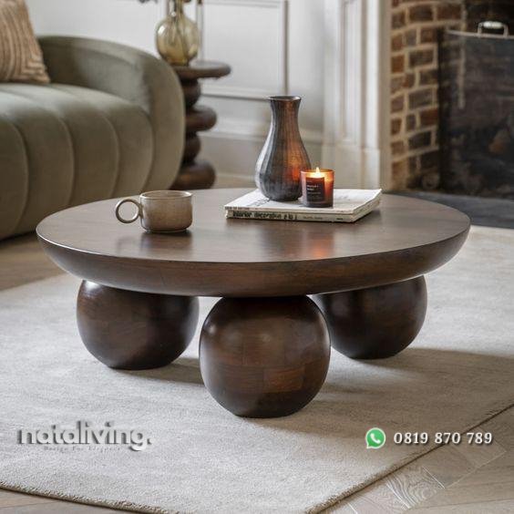Coffe table kayu jati solid meja tamu bundar mewah nataliving furniture