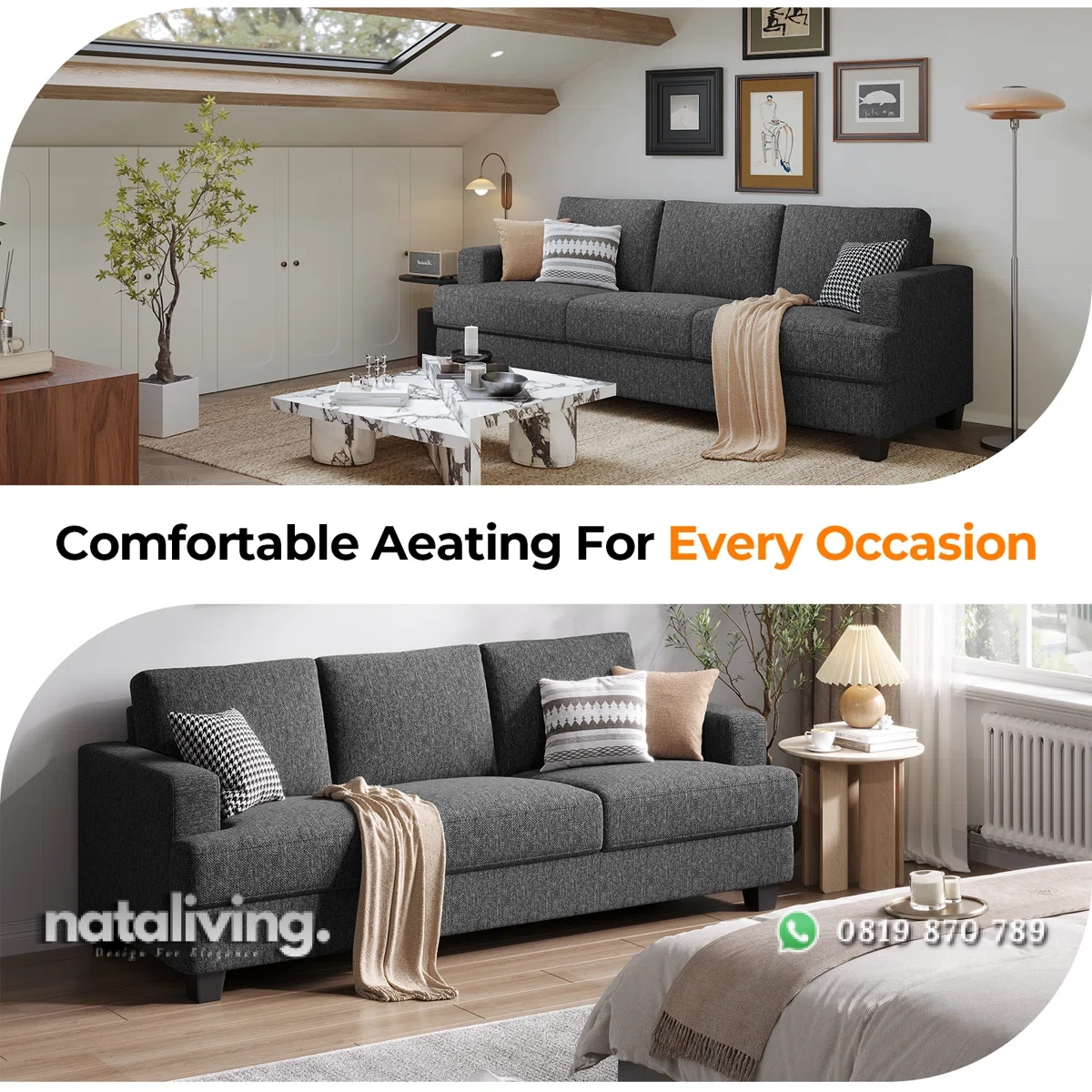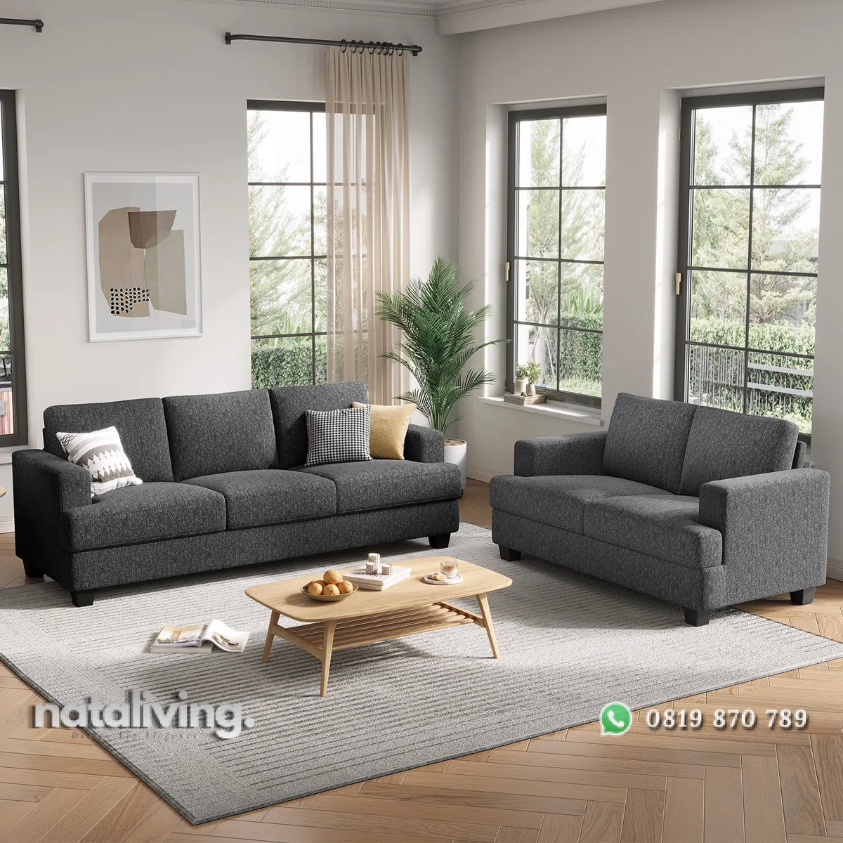 - Sofa 3 Seater : P 225 cm x L 85 cm x T 80 cm