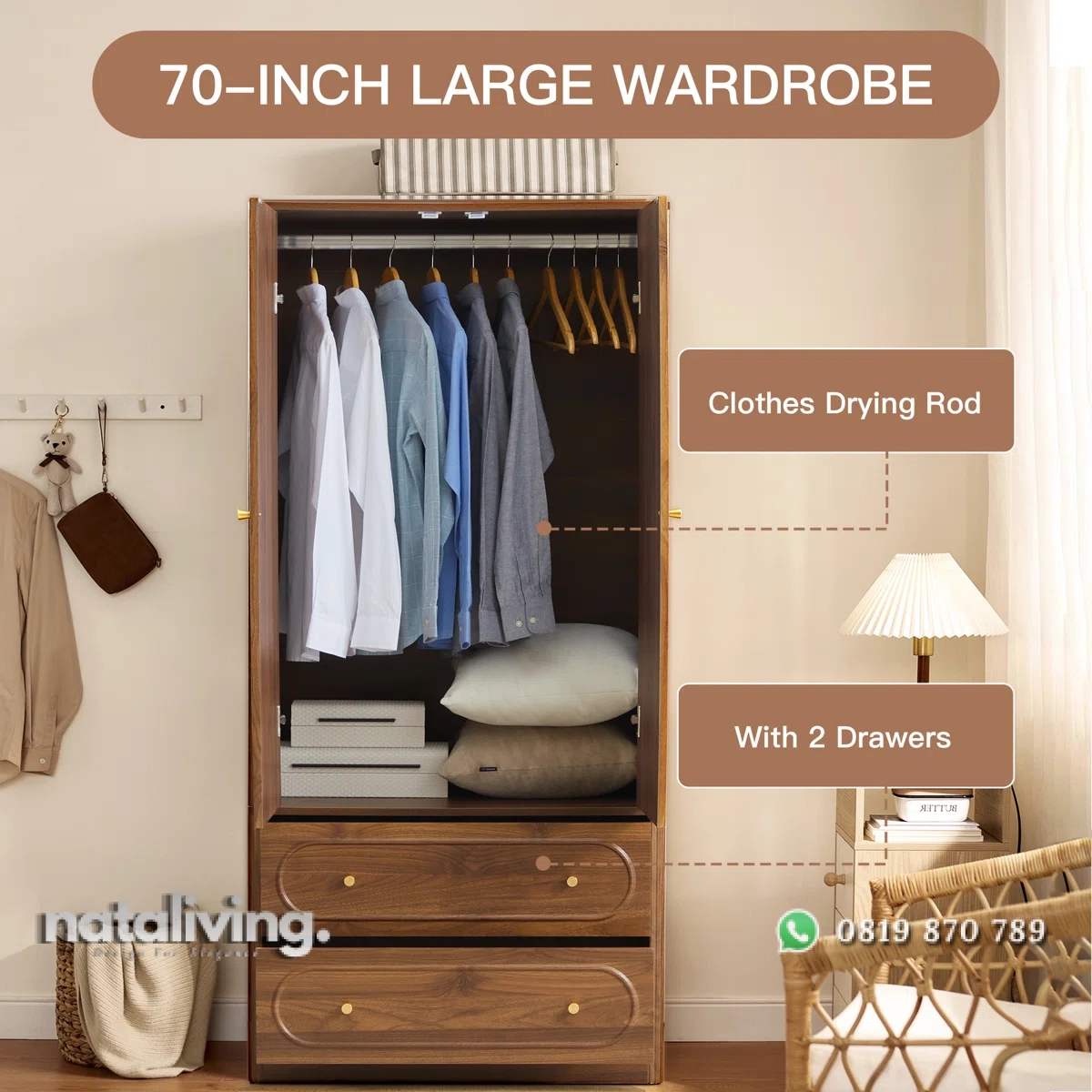 • Lemari Pakaian : P 90 cm x L 50 cm x T 170 cm