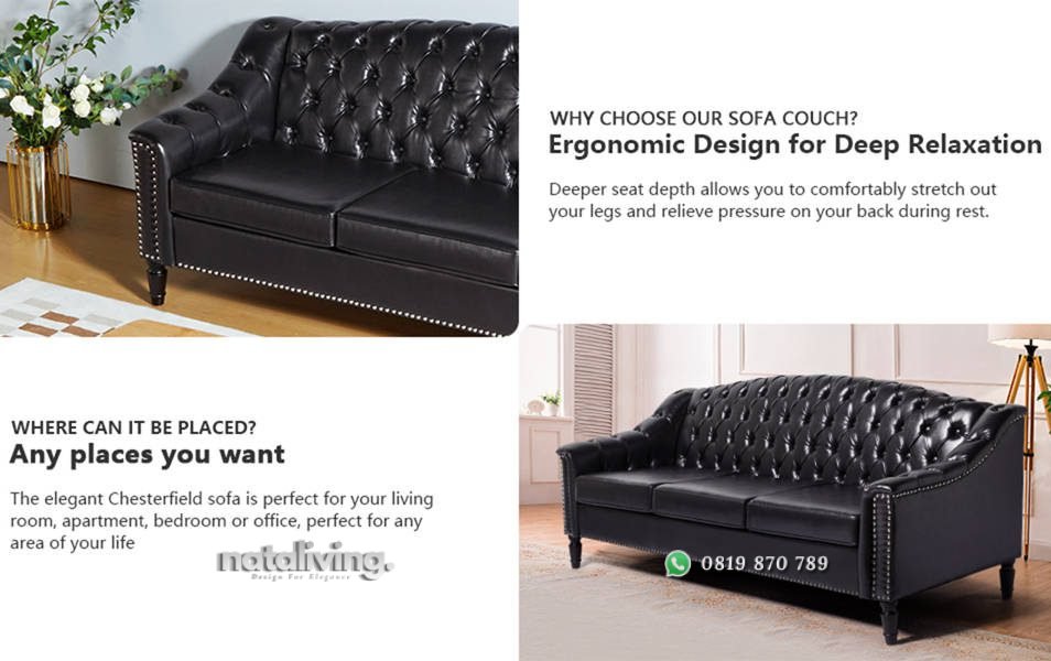 • Sofa 3 Seater : P 200 cm x L 73 cm x T 76  cm