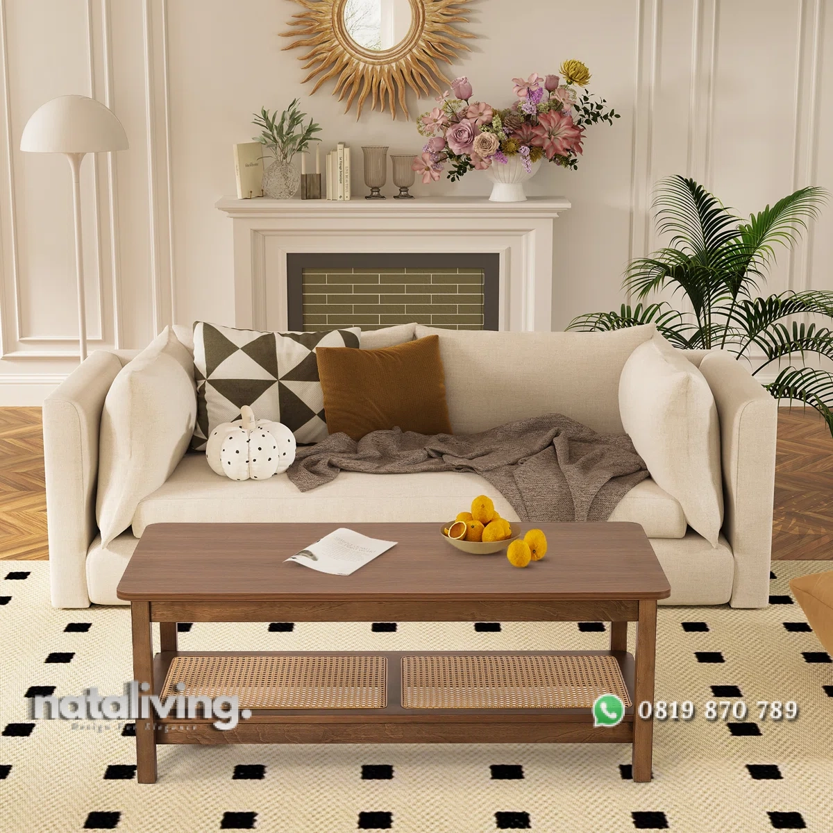 ini akan merubah ruang tamu Anda dengan sentuhan stylish namun praktis. Lihatlah meja tamu ini yang tidak hanya terlihat menawan tetapi juga dilengkapi dengan penyimpanan multifungsi yang praktis, sempurna untuk menyimpan majalah, remote, dan barang-barang penting lainnya. Finishingnya juga memberikan nuansa hangat, memperindah desain modern nya, dan membuat ruang Anda terasa lebih ramah. Meja tamu ini akan menjadi pusat perhatian yang menawan di ruang tamu Anda.
