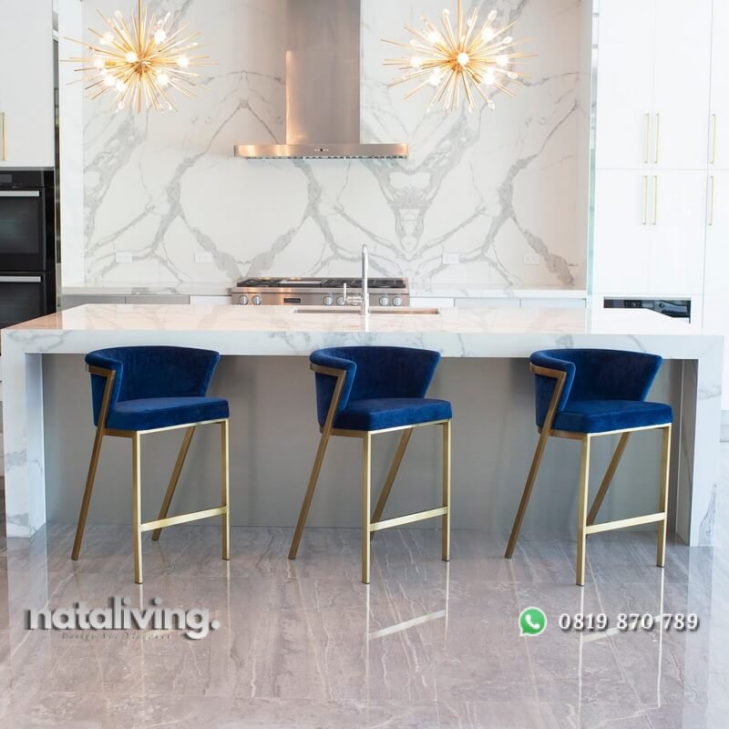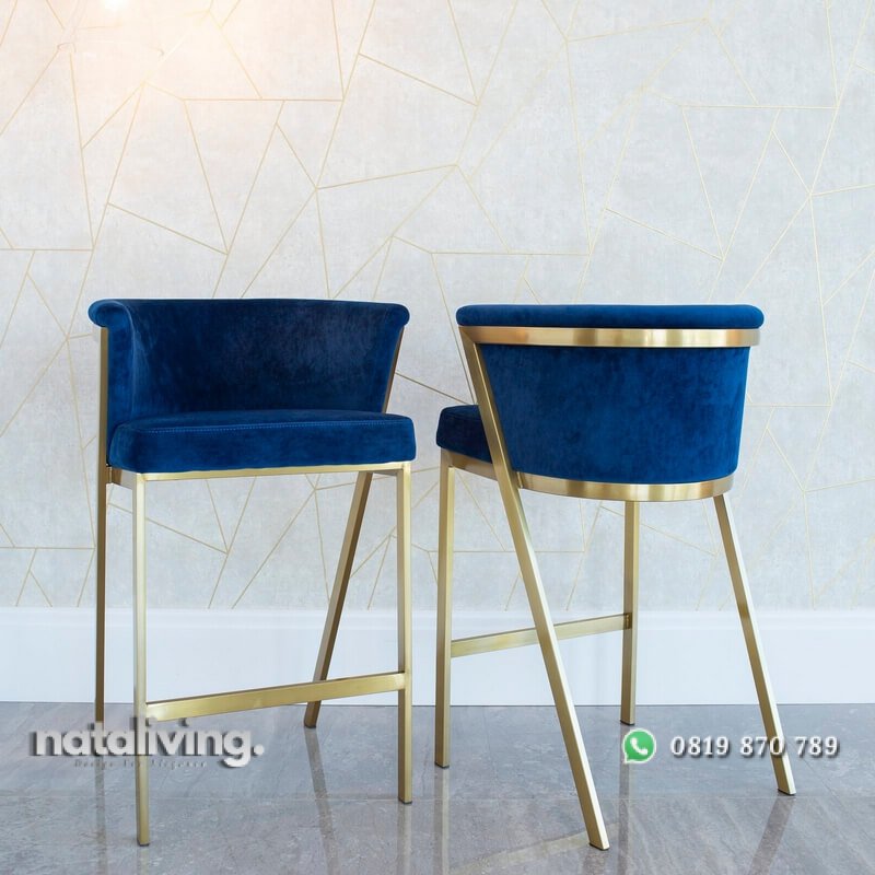 Hadir dengan konsep minimalis modern gaya terbaru yang sangat keren dan trendi. Dimana rangka kursi bar ini menggunakan bahan stainless steel gold dengan balutan jok dari busa berlapis kain beludru. Sehingga menjadikannya visualnya semakin modis sesuai dengan era zaman now sekarang. Sehingga akan akan sangat tepat untuk menjadi furniture pada tempat usaha anda. Baik itu cafe, coffee shop, bar ataupun usaha sejenis lainnya.