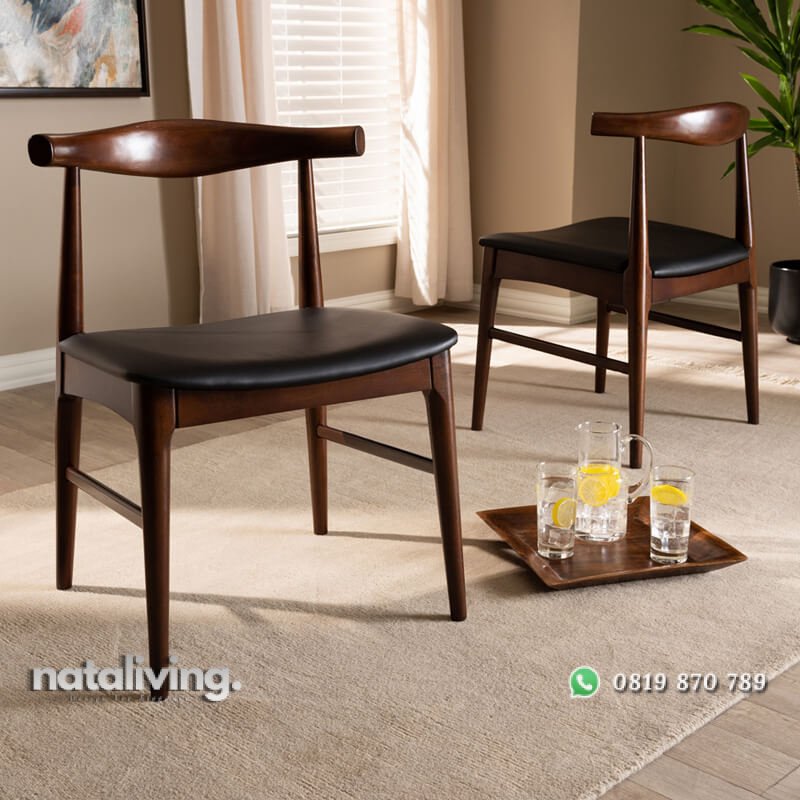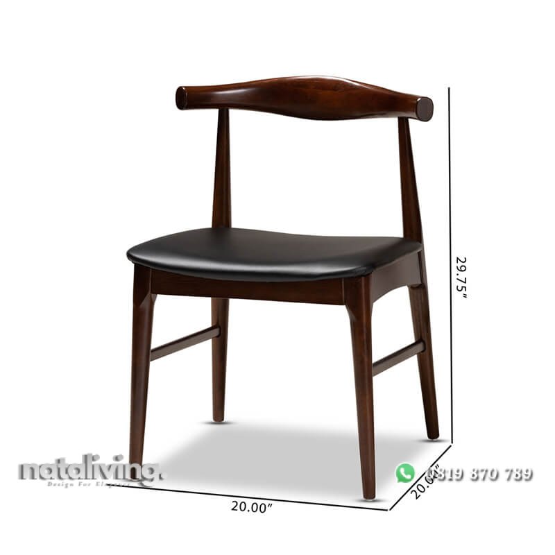 Terbuat dari material kayu jati pilihan kualitas bagus dan didesain dengan konsep minimalis retro modern yang memiliki kaki ramping. Tentunya untuk menambah ciamik tampilannya, kursi ini dilapisi dengan wood finsihing warna dark walnut brown. Sehingga tampilan visualnya terkesan lebih indah dan elegant. Dan kursi ini juga dilengkapi dudukan jok yang empuk serta nyaman sekali. Sehingga produk satu ini sangat tepat sekali untuk melengkapi furniture pada cafe, coffee shop bergaya modis abad ini.