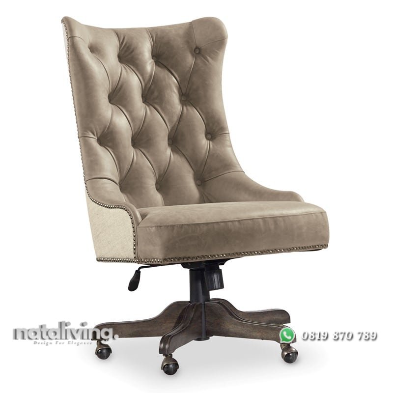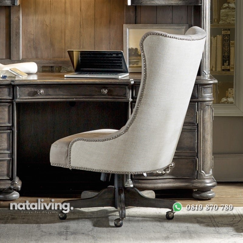 Kursi kantor ini terbuat dari kayu mindi dengan desain klasik vintage yang sangat cocok untuk ruang vintage juga minimalis, sesuaikan desain home office anda dengan kursi kantor ini.