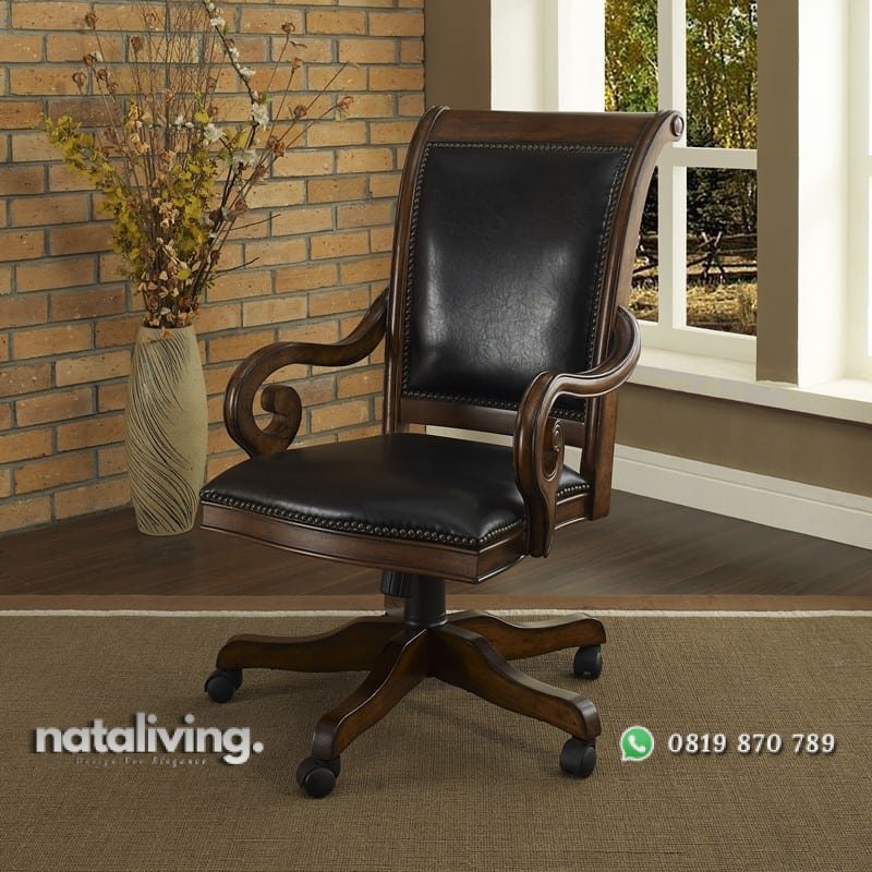 Kursi kerja kayu ini terbuat dari kayu jati dan memiliki model klasik, untuk bahan kami proses oven dulu supaya mendapatkan kualitas yang baik dan kontruksi juga kami sangat mengutamakan kekuatan dari produk ini.