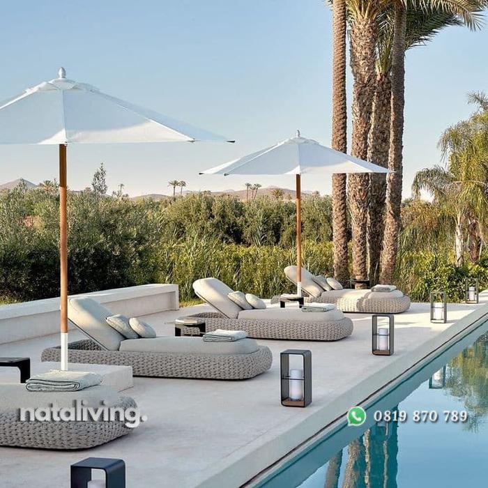 Kursi lonjer rotan sintetis full bantalan bangku kolam renang nataliving furniture 1