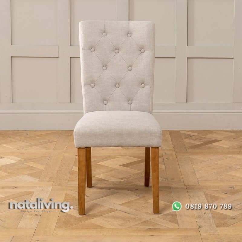 Hadir dengan konsep minimalis model terbaru dengan sentuhan wood finishing warna natural, dan dudukan serta sandaran jok dari busa LG empuk berlapis kain fabric. Tentunya untuk rangka kursinya terbuat dari bahan baku kayu jati pilihan kualitas bagus, sehingga kuat dan juga kokoh.