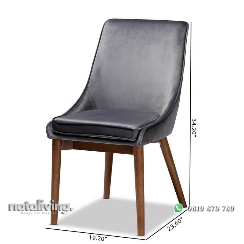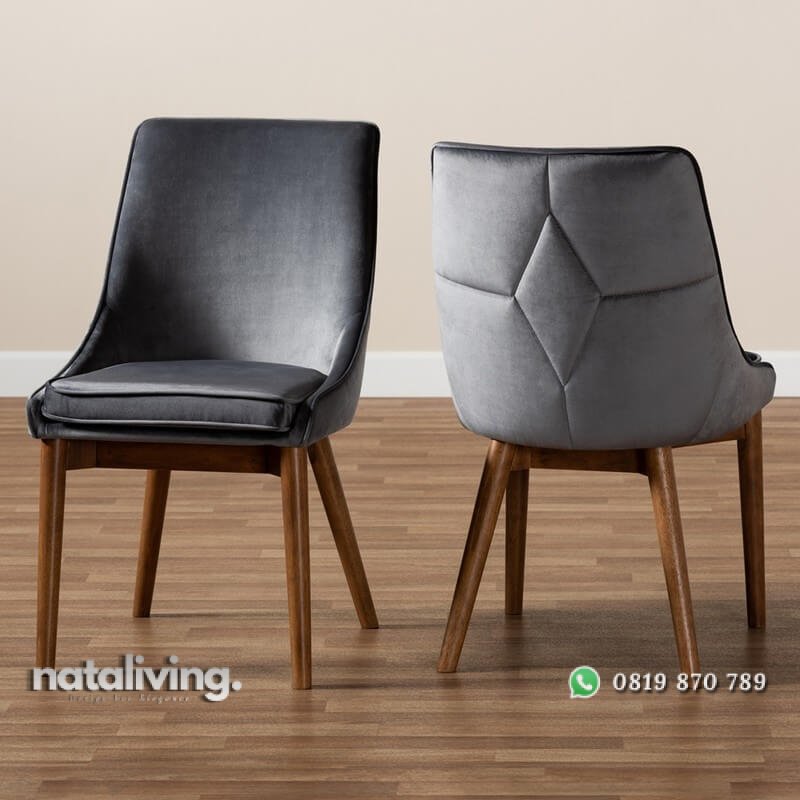 Diolah menggunakan kayu jati pilihan dengan konsep minimalis gaya terbaru yang kakinya berbentuk ramping meruncing ala retro style. Dilengkapi dengan jok berbentuk modis dan trendi dari busa LJ empuk berlapis kain bludru bertextur halus dan lembut. Tampilannya juga sangat indah dengan lapisan wood finishing warna walnut brown. Sehingga produk kursi makan ini sangat tepat sekali untuk menemani meja makan anda di rumah atau di cafe.