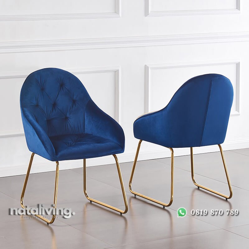 Hadir dengan konsep minimalis modern masa kini yang desainnya sangat kekinian sekali. Sehingga akan sangat cocok untuk melengkapi furniture pada rumah berkonsep zaman now yang sangat modern. Kursi makan ini rangkanya menggunakan bahan stainless steel dan dilapisi dengan jok yang sangat nyaman sekali. Dimana busa empuk berlapis kain beludru bertextur halus dan lembut. Sehingga kursi ini akan dapat menambah kenyamanan saat anda menikmati makanan di atas meja.