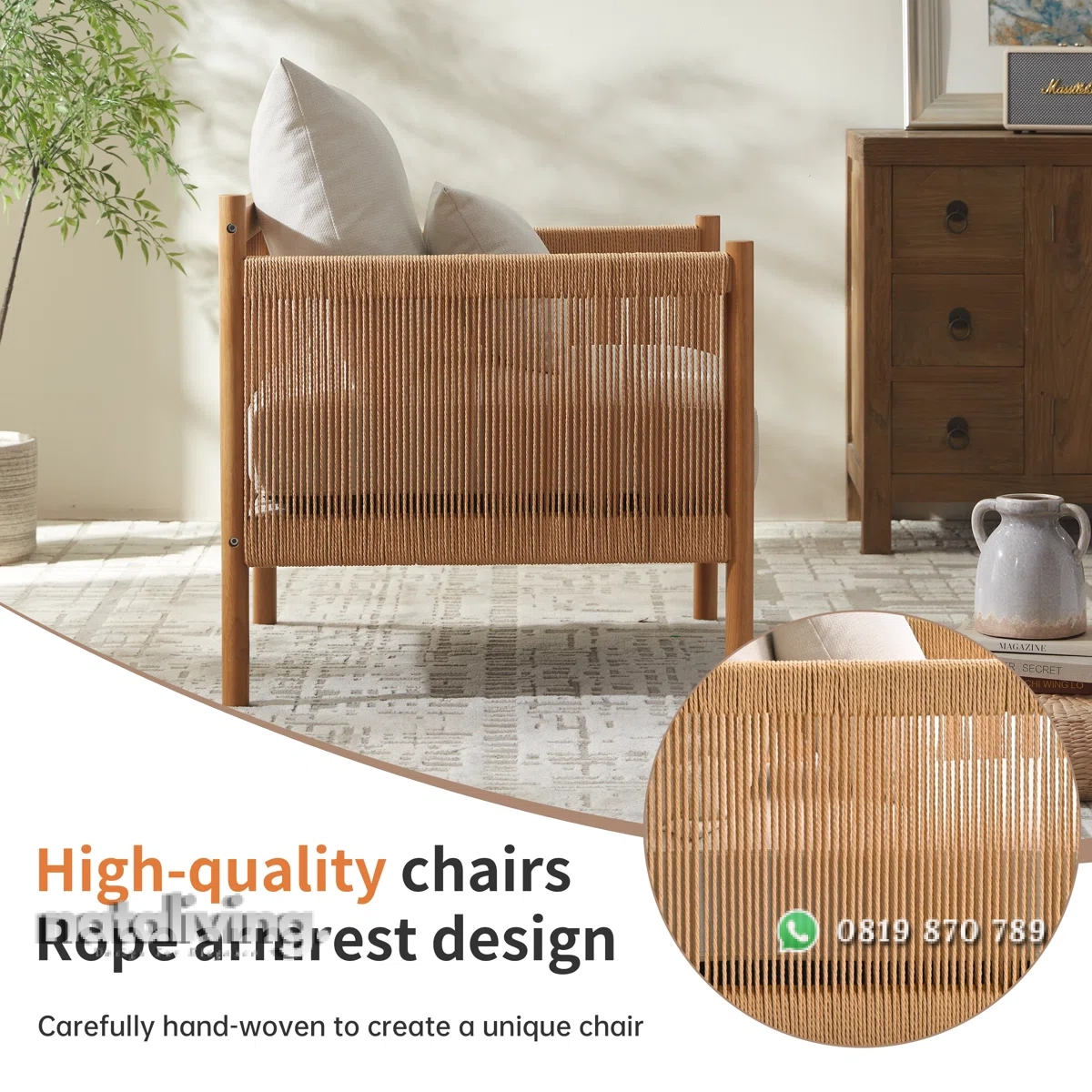 Kursi rotan ini memadukan sandaran tangan anyaman tali kertas dengan rangka kayu solid secara sempurna. Detail anyaman tangan memberikan sentuhan artistik yang unik, menambahkan sentuhan gaya pada ruangan mana pun. Pelapisnya lembut namun nyaman, menjadikannya bergaya sekaligus praktis. Bantalan memberikan dukungan yang baik. Kaki kayu karet kokoh dan dibuat dengan baik.