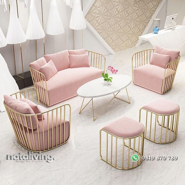 Kursi tamu besi finishing gold jok busa tebal meja tamu marmer nataliving furniture