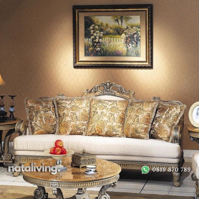 Produk ini adalah 1 set kursi tamu terdiri dari 4 kursi sofa dan 1 meja. Didesain dengan nuansa mewah. Warnanya mencolok terang dikombinasikan lebih indah. Kursi dan meja dihias ukiran yang menampilkan mahakarya artistik.