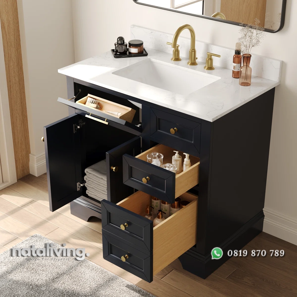 Hadirkan pesona kemewahan dalam ruang kamar mandi dan salah satu tempat cuci tangan ataupun membasuh muka Anda yaitu dengan produk ini sangat cocok untuk menjadi salah satu pilihan bagi Anda. Karena desain dari produk Wastafel Cabinet ini sangat elegant dengan mengusung tema minimalis bergaya modern yang sangat modis dan kekinian. Serta memiliki visual yang menawan berkat lapisan warna cat duco putih sehingga menambah kesan mewah juga elegant. Dan pastinya, bahan baku utama dari produk Wastafel ini diolah dengan menggunakan kayu mahogany bercampur mdf sehingga terjamin akan mutu, awet dan kualitasnnya.