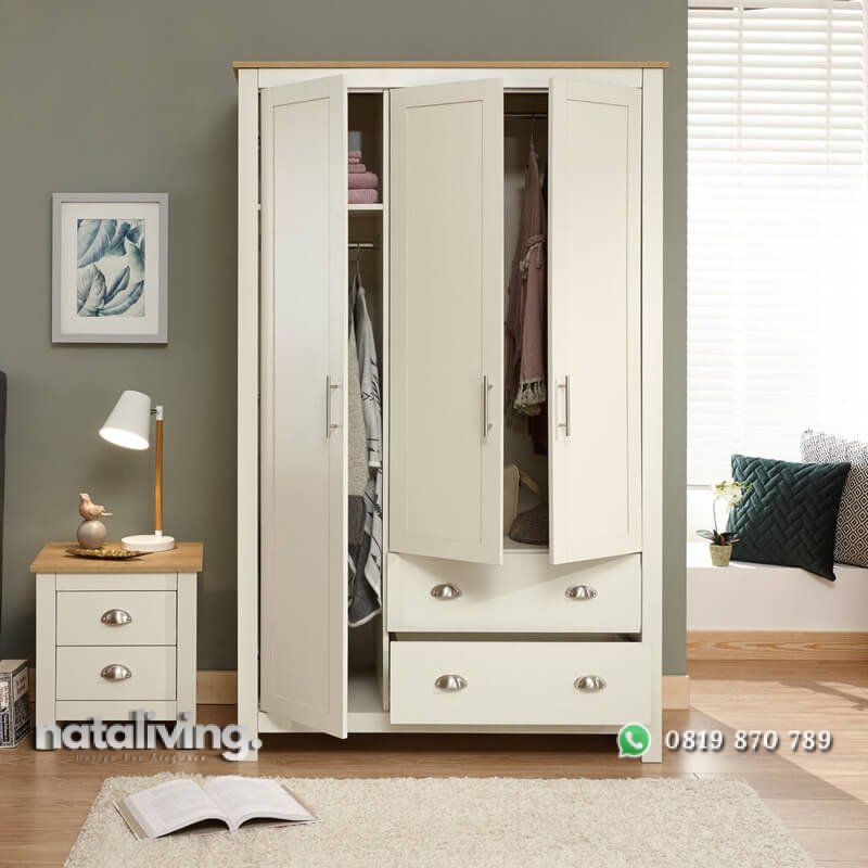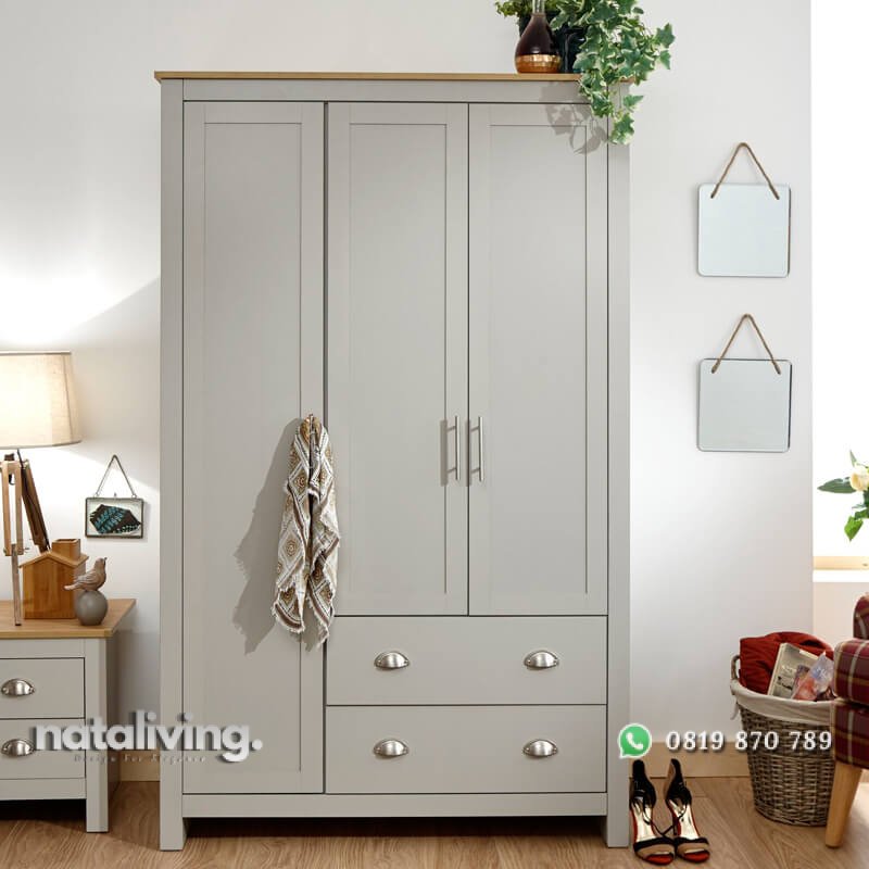 Hadir dengan konsep minimalis model 3 pintu terbaru yang sangat trendi dengan dilengkapi 2 laci untuk tambahan tempat penyimpanan barang. Tentunya tampilannya dipercantik dengan duco finishing warna putih tebal, halus dan juga rapi. Sehingga selain menjadi tempat menyimpan pakaian, produk ini akan dapat memperindah interior ruang kamar utama anda.