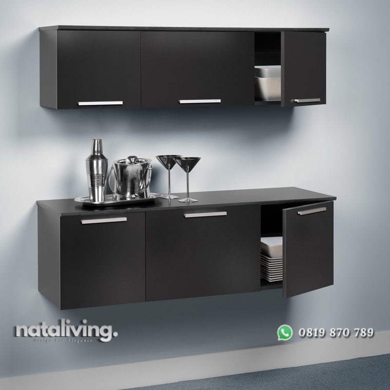 Lemari dapur dengan desain minimalis dan modern. Memiliki bentuk yang simpel dan lemari ini khusus untuk di terapkan dengan menempel di dinding ruangn dapur. Untuk pembelian produk ini tersedia dua lemari gantung.