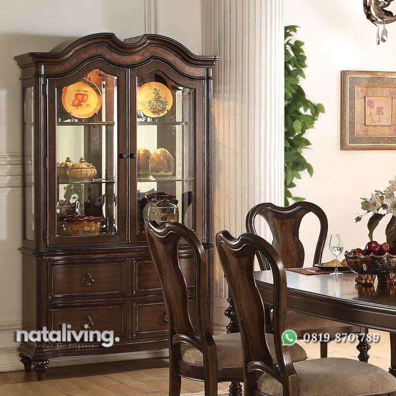 Memiliki tampilan bergaya minimalis dengan desain modern. Lemari Dapur ini akan membuat ruangan anda tekesan lebih elegan. Bahan baku menggunakan kayu jati dan kaca kualitas terbaik.