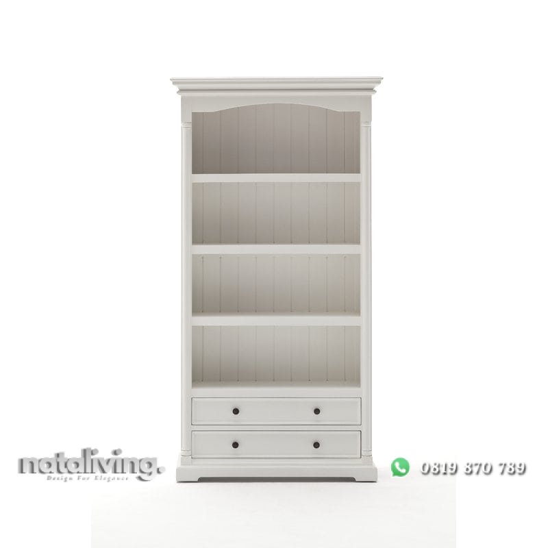 Lemari buku ini didesain bergaya minimalis, memiliki model rak buku bertingkat dan juga terdapat tambahan 2 laci bisa untuk menyimpan barang lainya.