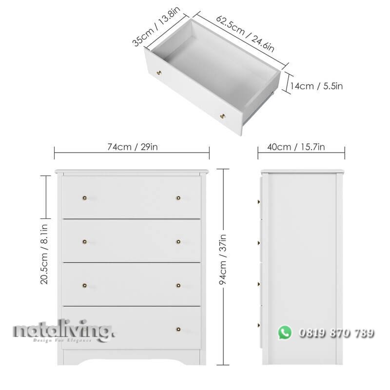 - Lemari Laci : P 74 cm x L 40 cm x T 94