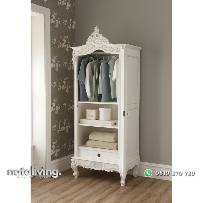 Lemari pakaian ini dihias ukiran yang membuat tampil lebih berkelas, motif ukiran tampil secara detail dan bernilai seni tinggi, dengan mengambil pintu yang berkaca semakin terlihat sempurna.