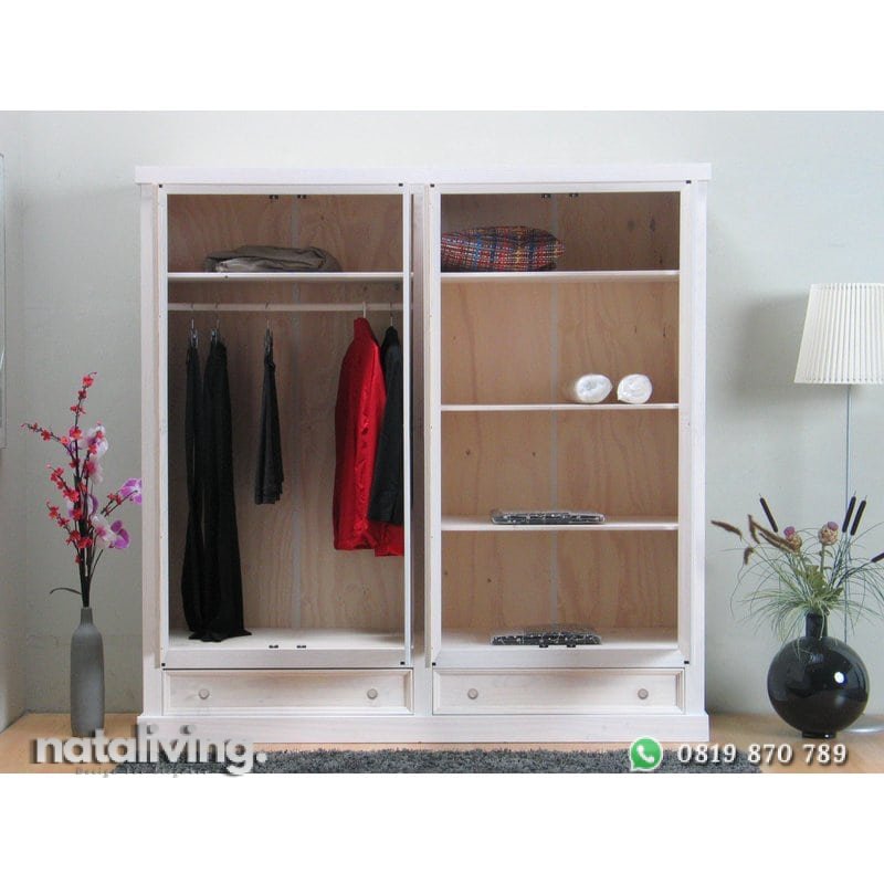 Lemari pakaian yang dapat menampung seluruh pakaian keluarga, ukuran yang sangat besar dan penyimpanan yang sesuai, ada 4 pintu dan 2 laci dibawahnya untuk penyimpanan yang lebih efektif.