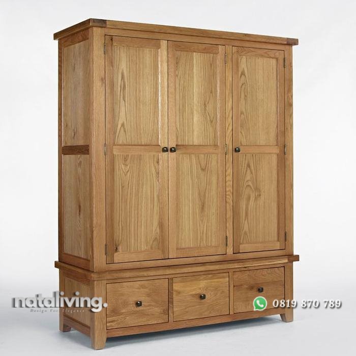 Lemari pakaian pintu 3 kayu jati finishing blecing nataliving furniture