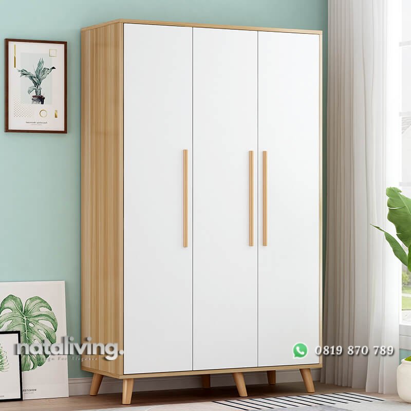 Produk lemari pakaian desain retro modern gaya terbaru ini akan sangat cocok untuk kamar anda. Dimana dilengkapi dengan 3 pintu yang memiliki banyak fitur penyimpanan untuk pakaian anda. Tentunya kaki furniture ini berbentuk ramping meruncing yang menegaskan gaya retro modern atau scandinavian style yang sedang trend saat ini. Dan furniture dari bahan kayu mahoni oven ini dimaximalkan dengan lapisan cat duco warna putih mix wood finishing warna natural. Sehingga menjadikannya lebih keren dan pantas untuk menjadi furniture pada kamar anda.