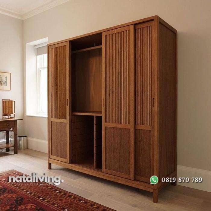 Lemari pakaian terbaru pintu sleding kayu jati almari pintu 3 nataliving furniture 1