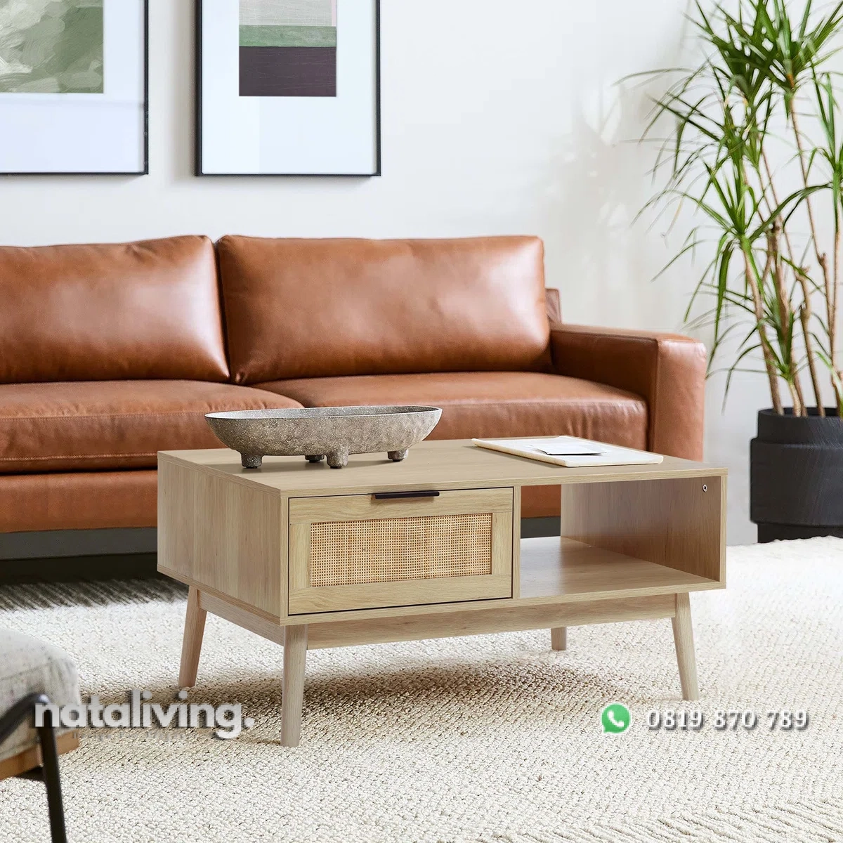 Luxen Meja Tamu Rotan Bleaching Desain Retro Minimalis nataliving furniture 1