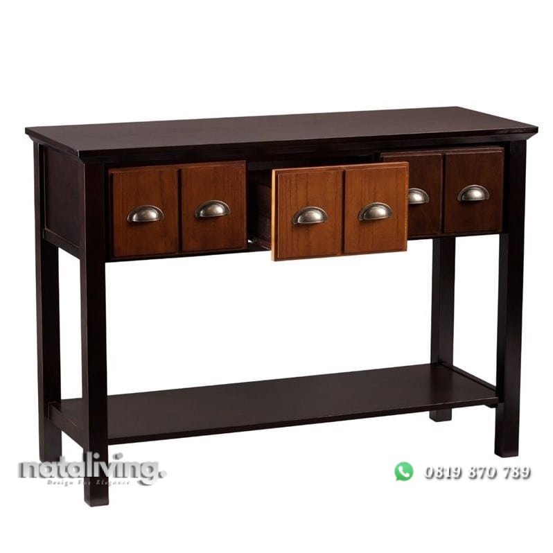 Meja konsul ini memiliki desain yang apik, anda bisa tambahkan kaca rias dan akan jadi meja rias, coock untuk di kamar ruang tamu atau dapur anda.