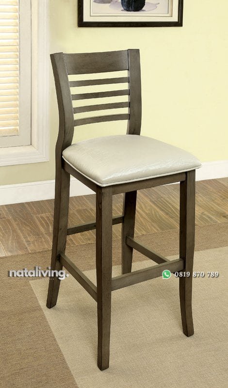 Meja bar unik dengan tampilan yang menarik perhatian. Desain simpel, kursi dengan sandaran yang sedikit melengkung jadi daya tarik tersendiri.