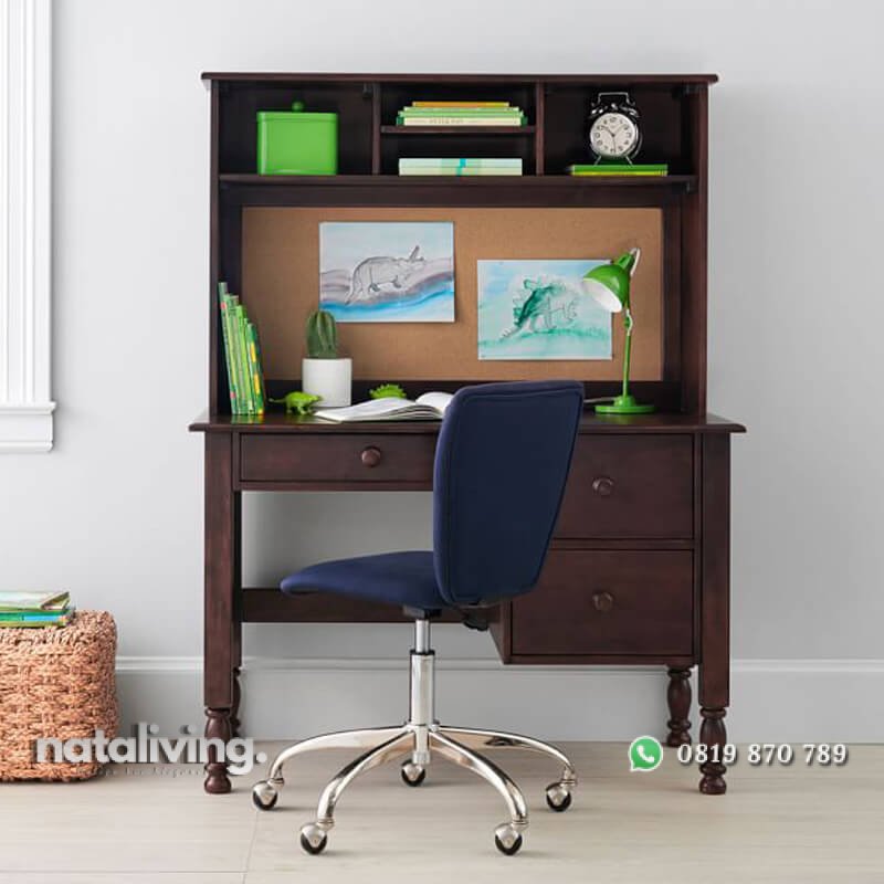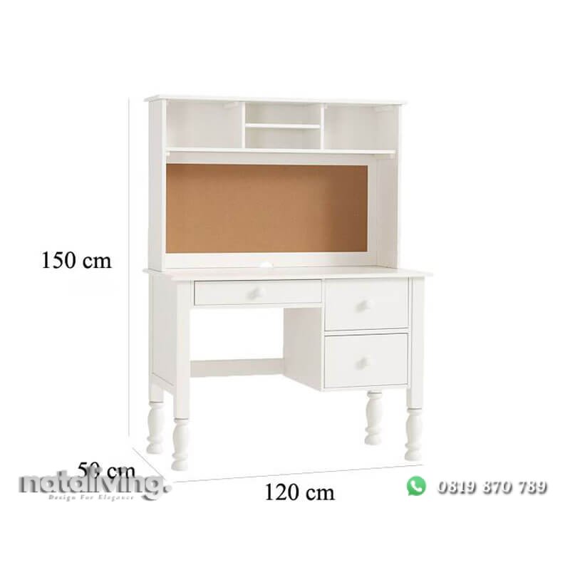 Sangat cocok untuk menjadi sarana belajar bagi anak anda pada kamarnya. Terbuat dari kayu mahoni oven dengan konsep minmalis model terbaru masa kini. Dan juga berlapis cat duco putih tebal, halus dan juga rapi, sehingga tampilannya lebih cantik dan indah. Tentunya desain minimalisnya dilengkapi dengan fitur tambahan seperti laci, keyboad flip dan juga rak buku.