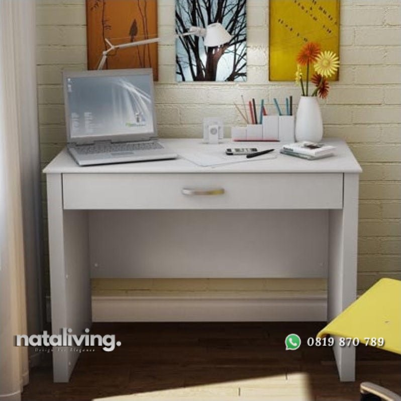 Meja belajar anak ini akan menjadi pilihan tempat untuk ruangan yang terbatas. Didesain minimalis simpel dengan dilengkapi 1 laci.
