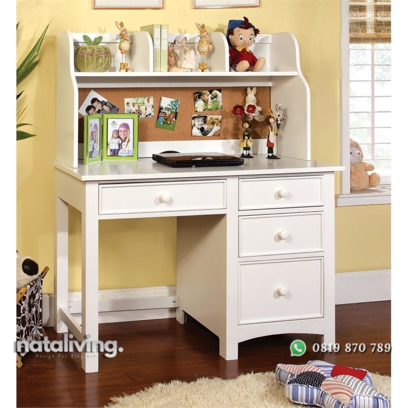 Meja belajar anak desain minimalis dengan harga terjangkau. Bentuk meja model 1/2 biro, sudah tersedia laci dan ada juga rak kecil di atas meja. Bahan kami memakai kayu mahoni.
