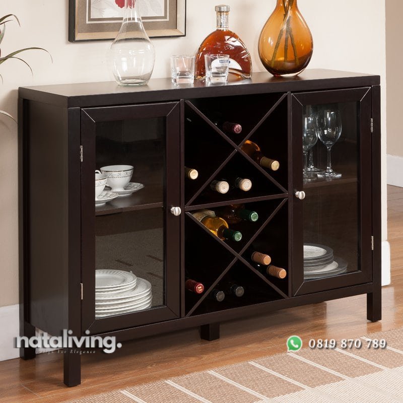Meja consule yang multifungsi ini didesain gaya minimalis yang indah. Memiliki tempat khusus untuk menyimpan botol minuman dan 2 pintu kaca yang bisa menyimpan barang lainya. Terampkan meja ini disamping ruangan dapur Anda.