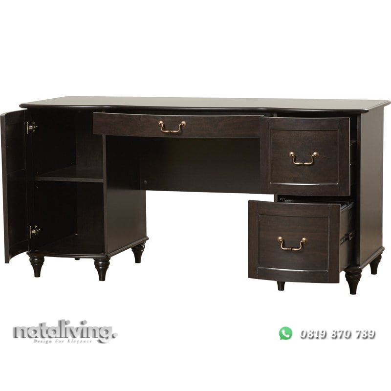 Merupakan salah produk meja kantor yang di rancang dengan 1 biro dimana terdapat 1 pintu, 2 laci dan 1 tempat keyboard serta memiliki desain minimalis modern. Meja kantor ini terbuat dari bahan kayu jati solid dan finishing yang berkualitas serta anti terhadap hama, sangat cocok untuk sebagai meja kerja anda karena produk meja kerja ini sangat kokoh sehingga dapat menunjang kerja anda.