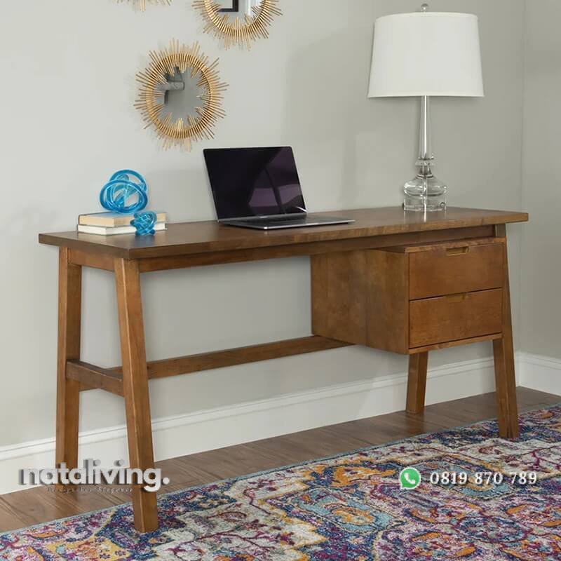 Produk meja kerja ini pastinya tercipta dari kayu jati kualitas bagus. Dimana memiliki karakter keras dan kuat, sehingga terjamin akan awet dan tahan lama. Didesain dengan konsep minimalis model terbaru yang dibekali dengan 2 laci penyimpanan. Serta visualnya sangat menawan dengan lapisan wood finshing warna walnut semi gloss. Sehingga meja ini akan sangat tepat sekali untuk menjadi sarana kerja anda di kantor.