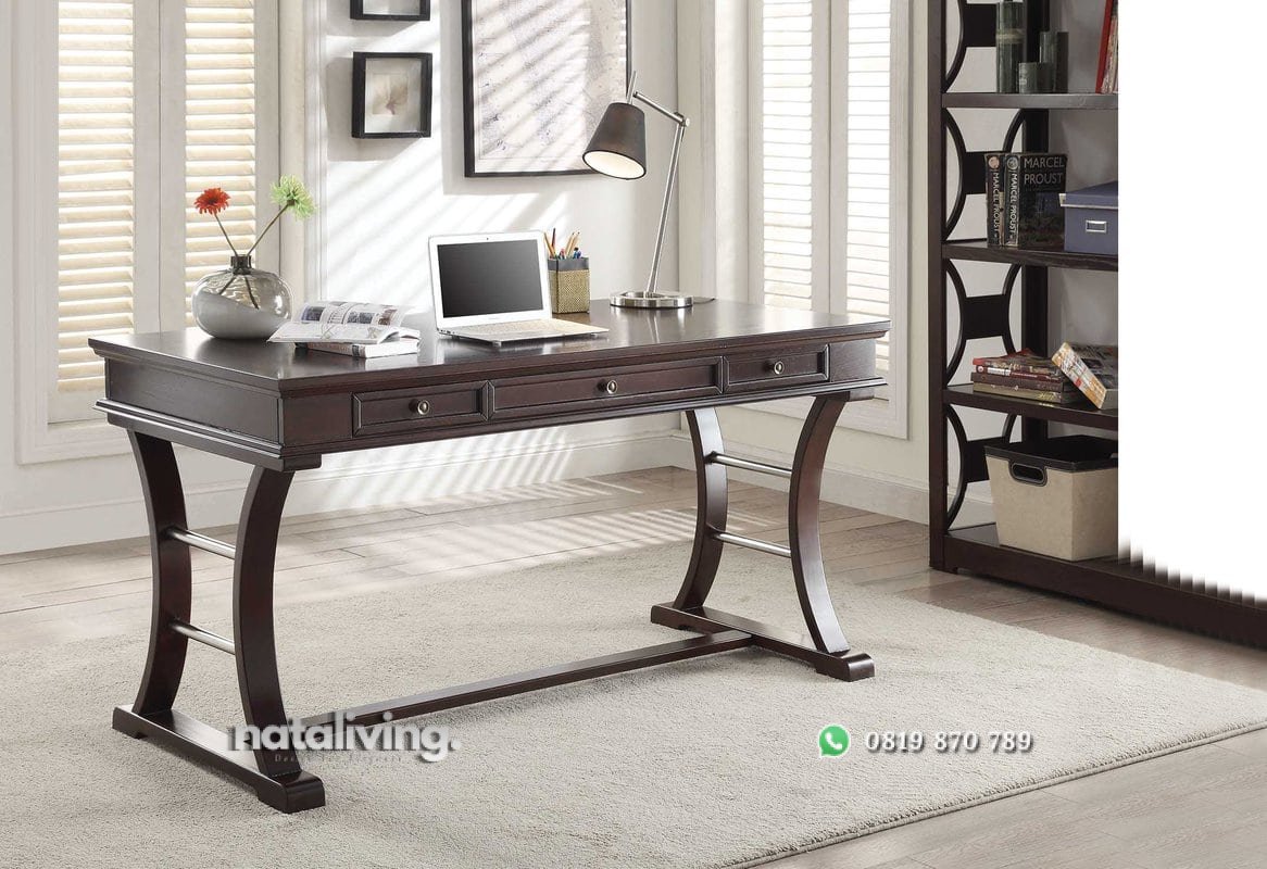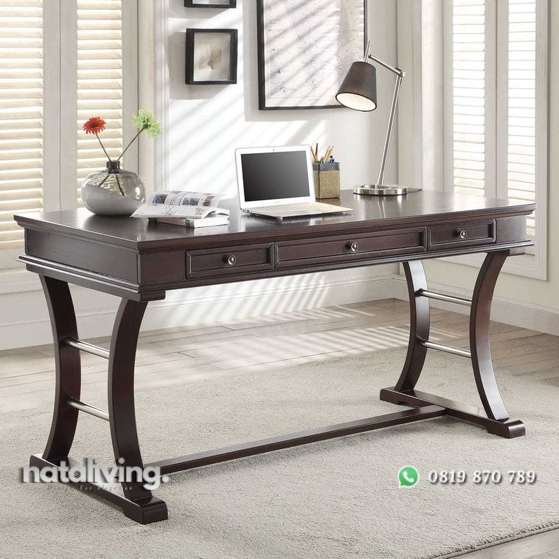 Desain minimalis meja kerja dengan bahan dari kayu jati kuat dan awet. Meja ini dikonsep bentuk sederhana meletakkanya dirumah cocok. Dengan dilengkapi 3 buah laci yang bisa Anda fungsikan untuk menyimpan perlengkapan kerja Anda.