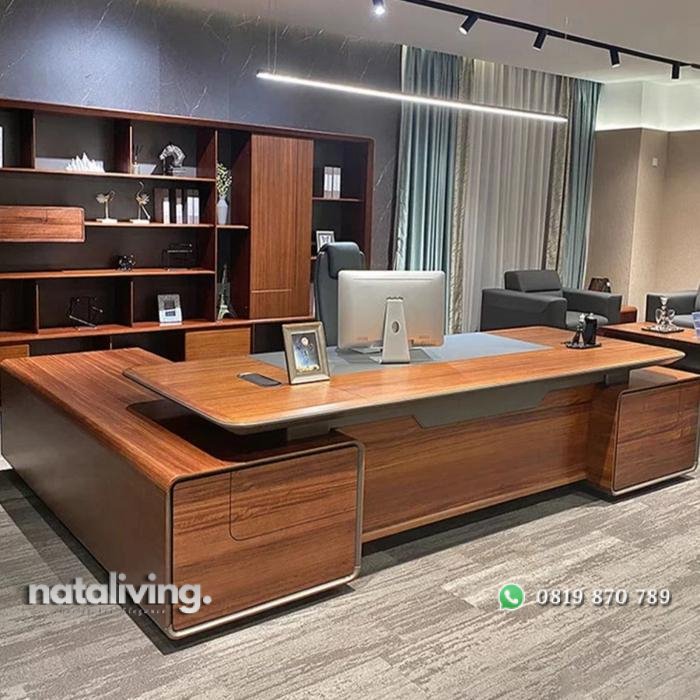 Meja kerja L modern kayu jati elegan meja direksi terbaru nataliving furniture 1