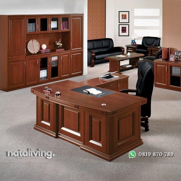 Meja kerja terbaru finishing natural meja kerja L pintu samping nataliving furniture